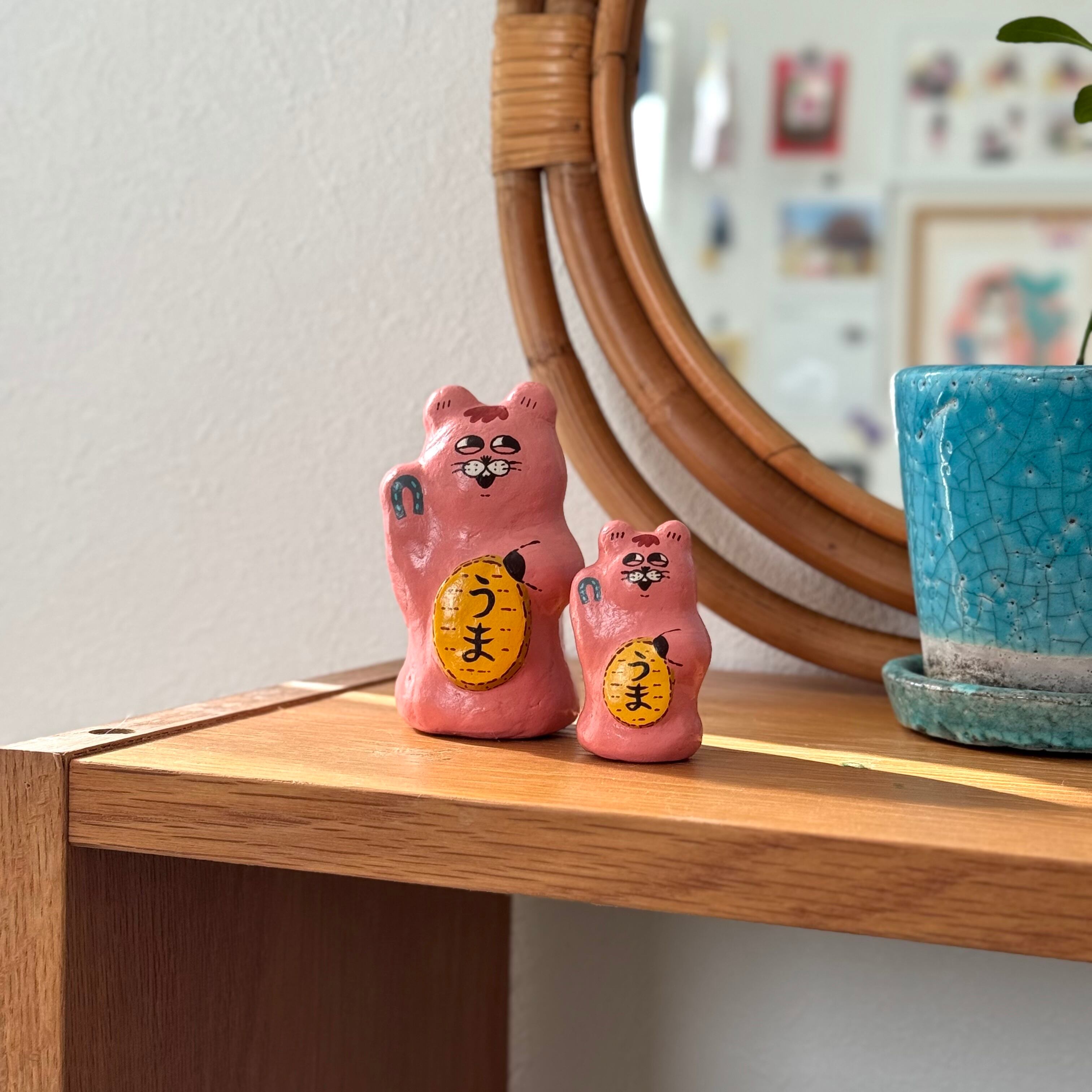 招く手には、幸運の象徴と言われる蹄鉄がついています。