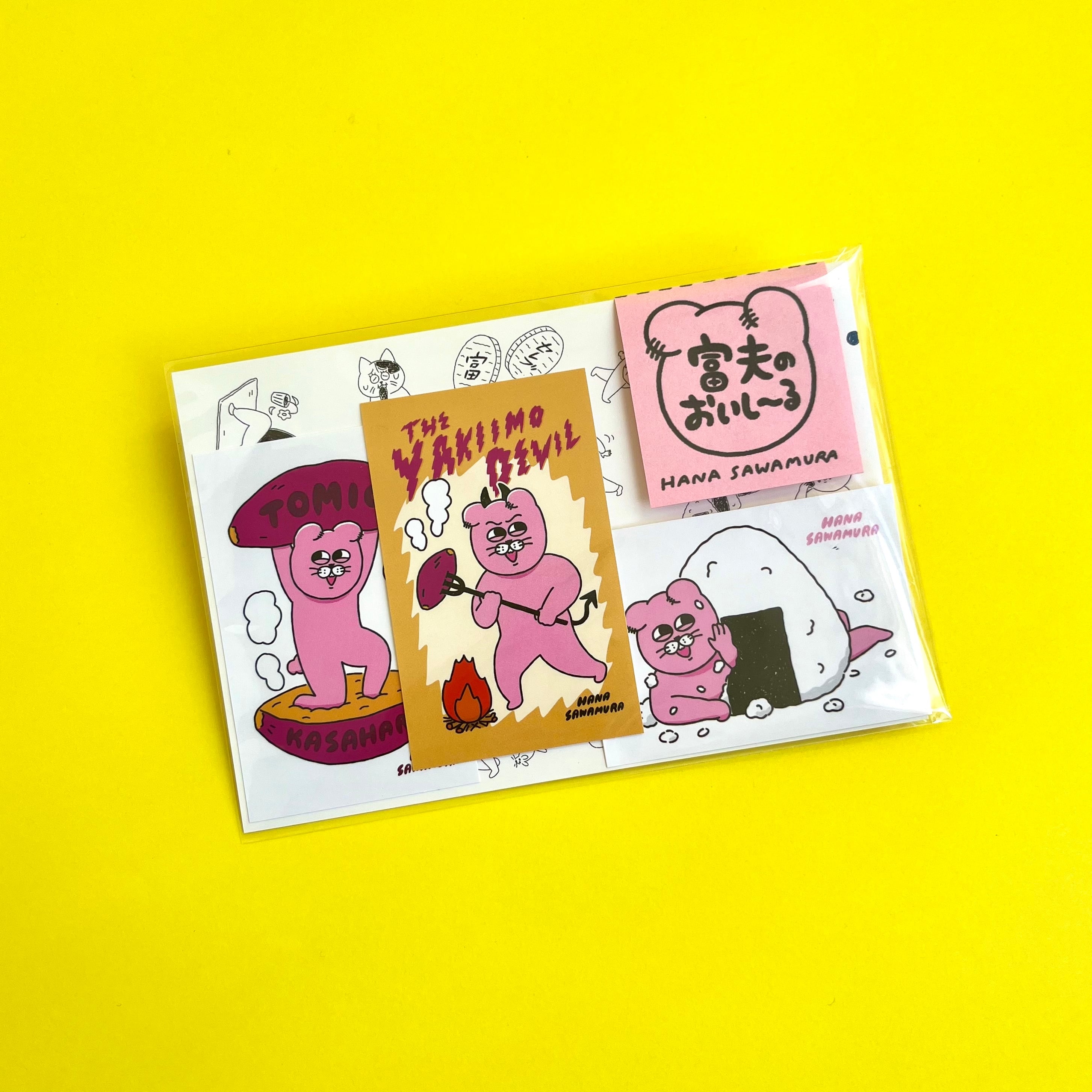 焼き芋とおにぎりに意識が集中した、お腹の空く3枚セットです。